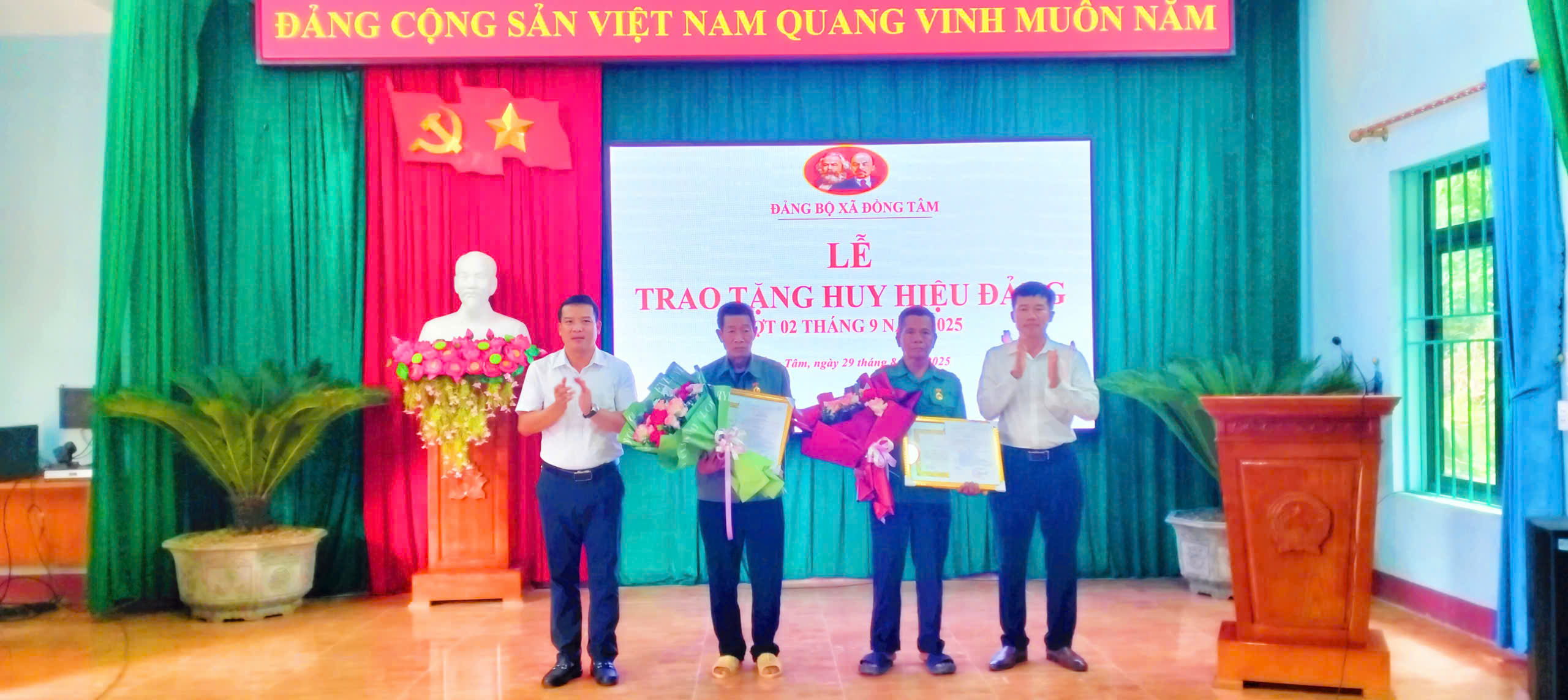 Căn cứ các Quyết định số 350-QĐ/TU, ngày 13 tháng 8 năm 2025 về việc trao tặng Huy hiệu Đảng, đợt 02/9/2025 của Ban Thường vụ Tỉnh ủy Tuyên Quang. Ngày 29/8/2025, tại trụ sở xã Đồng Tâm, Ban Thường vụ Đảng ủy xã Đồng Tâm, tỉnh Tuyên Quang tổ chức Lễ trao tặng Huy hiệu Đảng cho 04 đồng chí đảng viên.