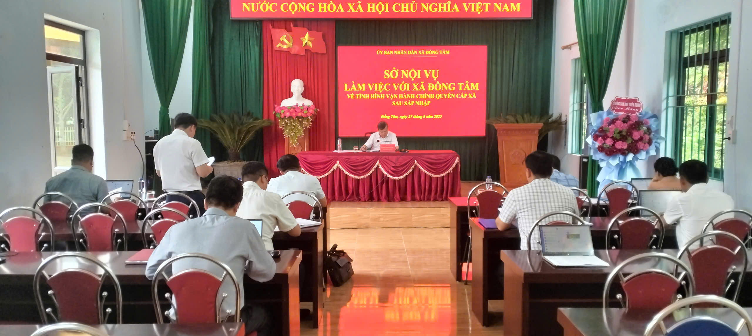 Triển khai Kế hoạch số 44/KH-SNV ngày 12/8/2025 của Sở Nội vụ tỉnh Tuyên Quang về làm việc với Uỷ ban nhân dân xã, phường trên địa bàn tỉnh nắm tình hình vận hành của bộ máy chính quyền địa phương cấp xã sau khi sắp xếp đơn vị hành chính. Ngày 27/8/2025 Đoàn công tác của Sở Nội vụ tỉnh Tuyên Quang do đồng chí Bàng Quốc Việt, Phó Giám đốc Sở Nội vụ tỉnh Tuyên Quang làm trưởng đoàn đã làm việc với UBND xã Đồng Tâm.