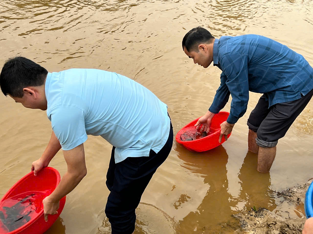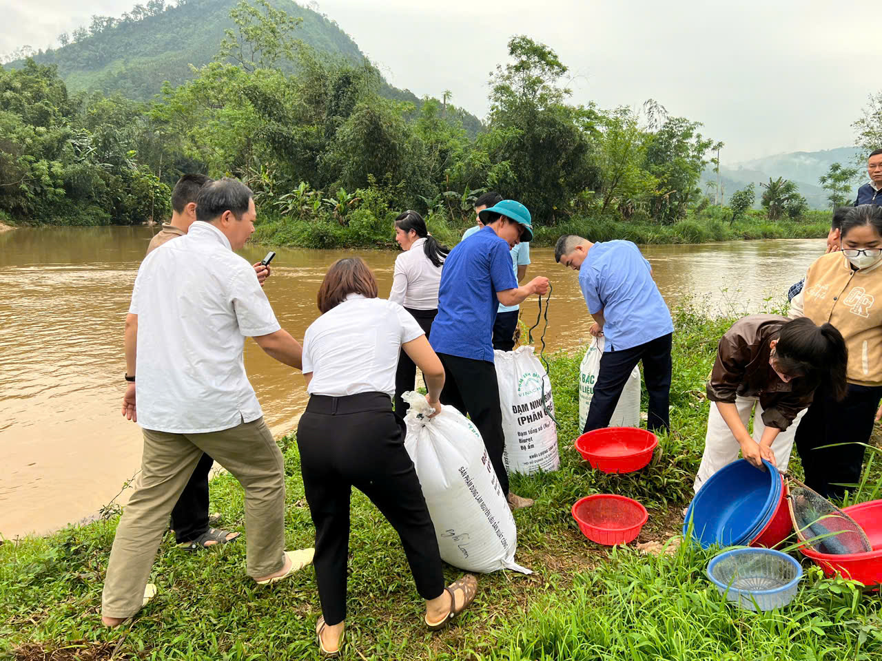 Sau lễ phát động, các đồng chí Lãnh đạo, các cơ quan, đơn vị cùng đông đảo bà con nhân dân thôn Cuôm đã tổ chức thả cá giống xuống Suối Cuôm nhằm bổ sung, tái tạo nguồn lợi thủy sản.
