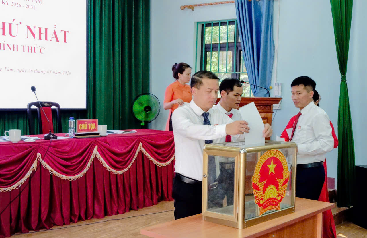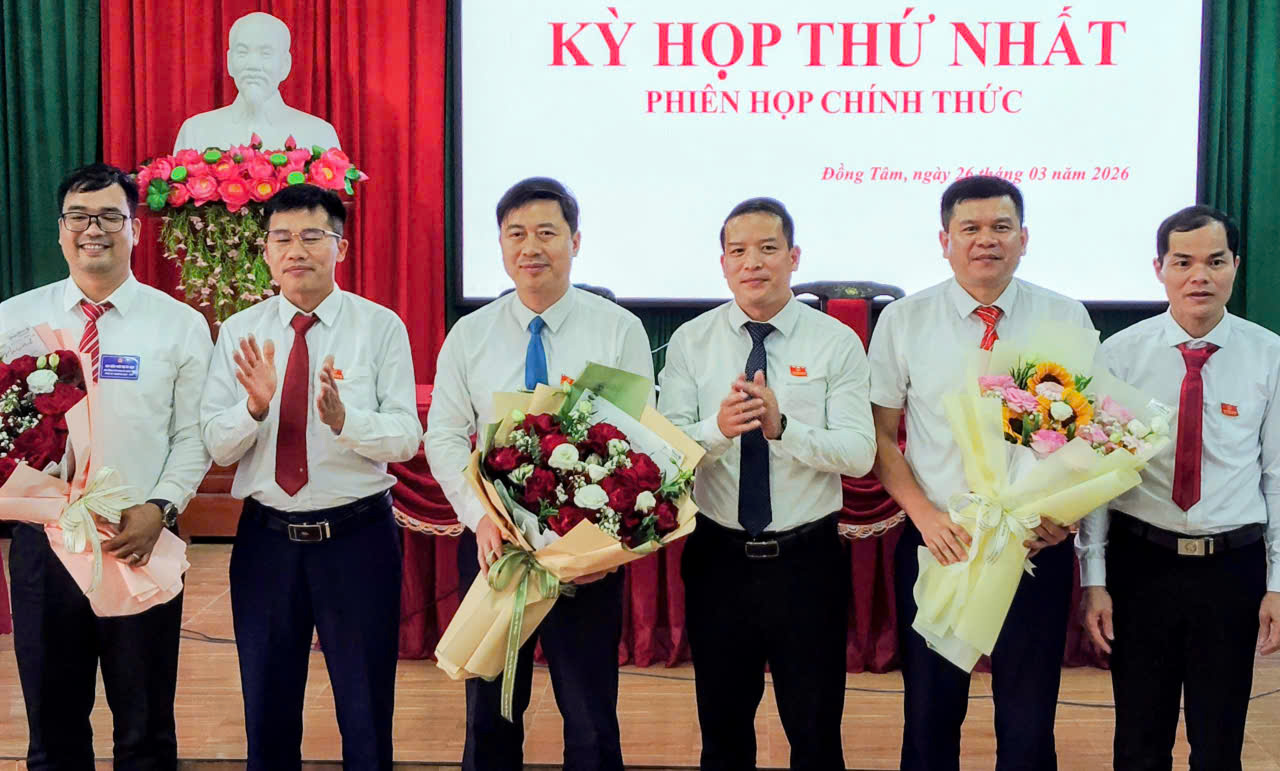 Tại kỳ họp đã tiến hành bầu các chức danh chủ chốt của HĐND xã, lãnh đạo UBND xã, lãnh đạo các Ban HĐND xã khóa VII nhiệm kỳ 2026-2031, với tinh thần dân chủ, trách nhiệm các đại biểu đã thống nhất cao, bầu các chức danh Chủ tịch HĐND, Phó Chủ tịch HĐND xã, đồng chí Thèn Văn Quân Bí thư Đảng ủy, Chủ tịch HĐND xã khóa VI tiếp tục được tín nhiệm bầu tái cử Chủ tịch HĐND xã Đồng Tâm khóa VII, nhiệm kỳ 2026-2031; đồng chí Bàn Văn Bình được bầu tái cử Phó Chủ tịch HĐND xã nhiệm kỳ 2026-2031, bầu Trưởng các ban HĐND xã, Lãnh đạo UBND xã và các ủy viên UBND xã, Đồng chí Lục Hải Xuyến được kỳ họp tín nhiệm bầu tái cử chức danh Chủ tịch UBND xã Đồng Tâm khóa VII, nhiệm kỳ 2026-2031, các đồng chí Nguyễn Trung Kiên, Đồng chí Hoàng Kim Tuấn tiếp tục được bầu tái cử chức danh Phó Chủ tịch UBND xã khóa VII, nhiệm kỳ 2026-2031, kết quả 100% đại biệu có mặt tại kỳ họp đã biểu quyết thông qua xác nhận kết quả bầu cử.