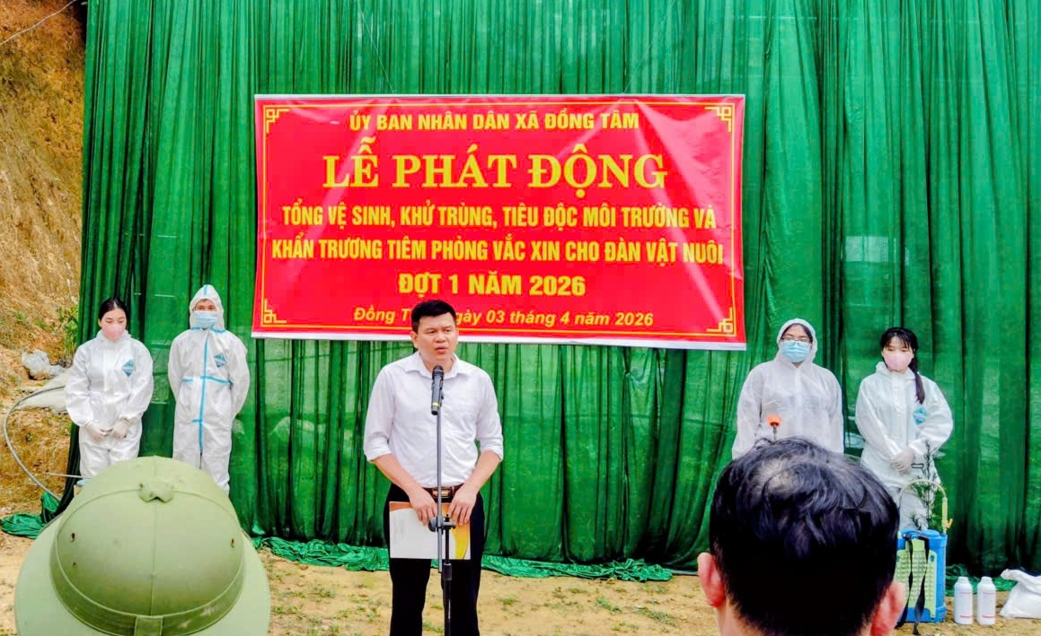 Sáng ngày 03/04/2026, Ủy ban nhân dân xã Đồng Tâm phát động “Tháng tổng vệ sinh, khử trùng, tiêu độc môi trường và tiêm phòng vắc xin cho đàn vật nuôi đợt 1 năm 2026” tại Thôn Phiến xã Đồng Tâm.