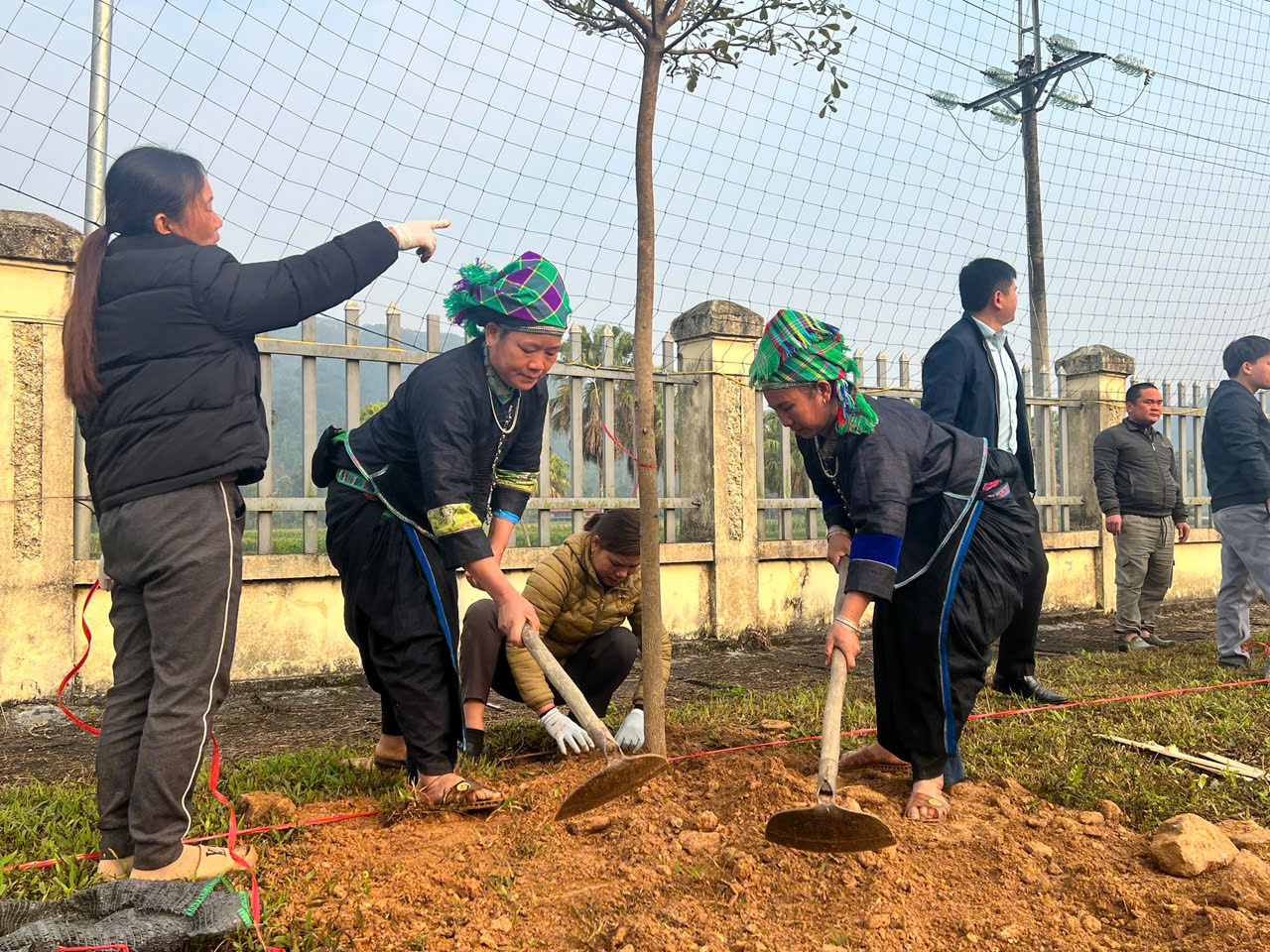 Lãnh đạo 2 xã Đồng Tâm và Bắc Mê tiến hành trồng cây tại khuôn viên ã Đồng Tâm
