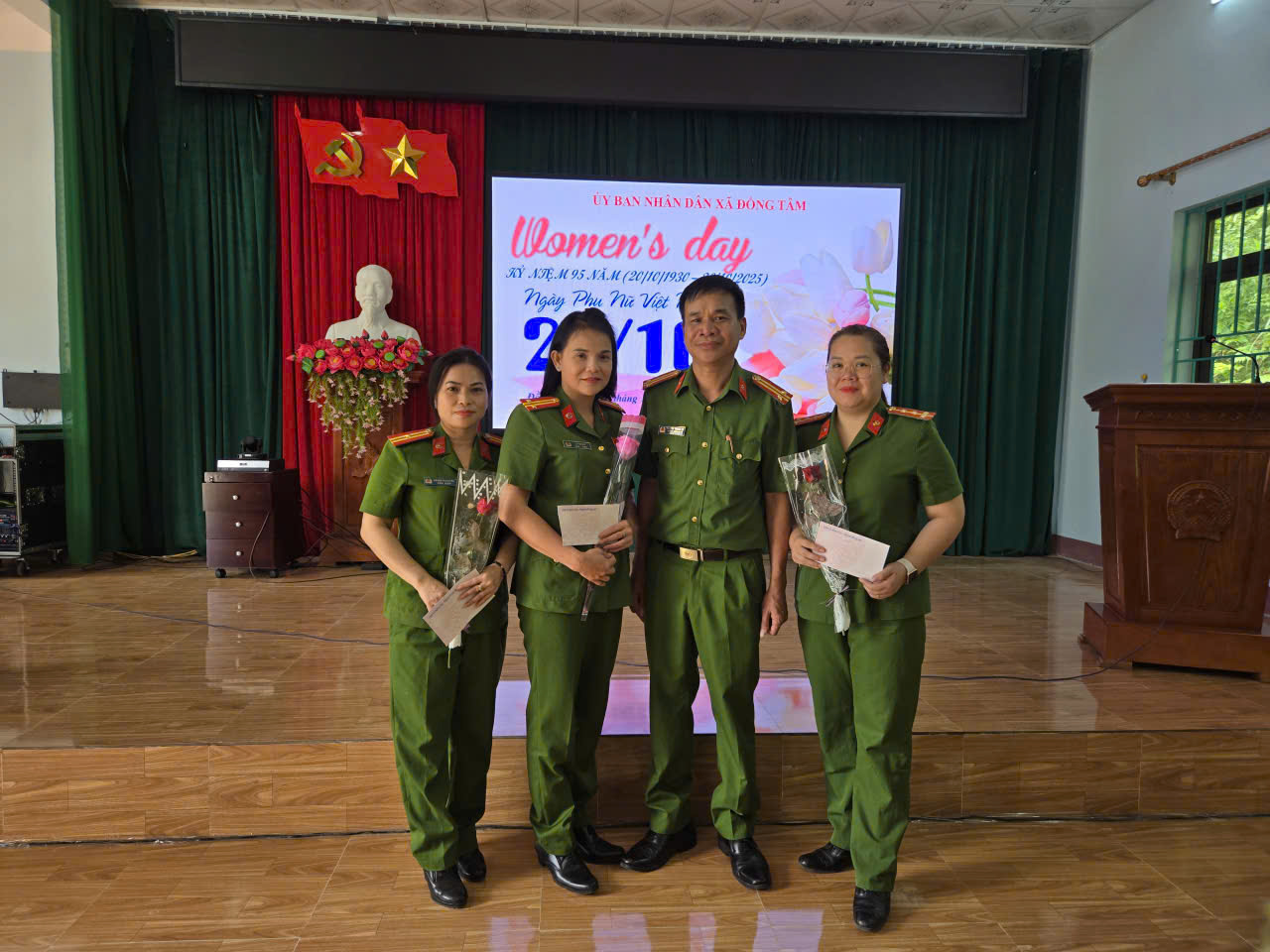 Tại buổi gặp mặt, đồng chí Lục Hải Xuyến, Phó Bí thư, Chủ tịch UBND xã và các đồng chí Ban Thường vụ Đảng ủy đã tặng hoa, quà, chia sẻ, động viên và gửi lời chúc mừng tốt đẹp nhất đến toàn thể nữ cán bộ, chiến sỹ, công chức, viên chức và người lao động nhân dịp kỷ niệm Ngày Phụ nữ Việt Nam 20/10. Đồng chí Chủ tịch UBND xã ghi nhận và biểu dương những đóng góp quan trọng của đội ngũ nữ trong công tác chuyên môn, cũng như trong việc xây dựng tập thể cơ quan đoàn kết, vững mạnh. Đồng thời, mong muốn chị em tiếp tục phát huy truyền thống tốt đẹp của phụ nữ Việt Nam, không ngừng học tập, rèn luyện, hoàn thành xuất sắc nhiệm vụ được giao, góp phần xây dựng xã Đồng Tâm ngày càng phát triển, văn minh và hạnh phúc.