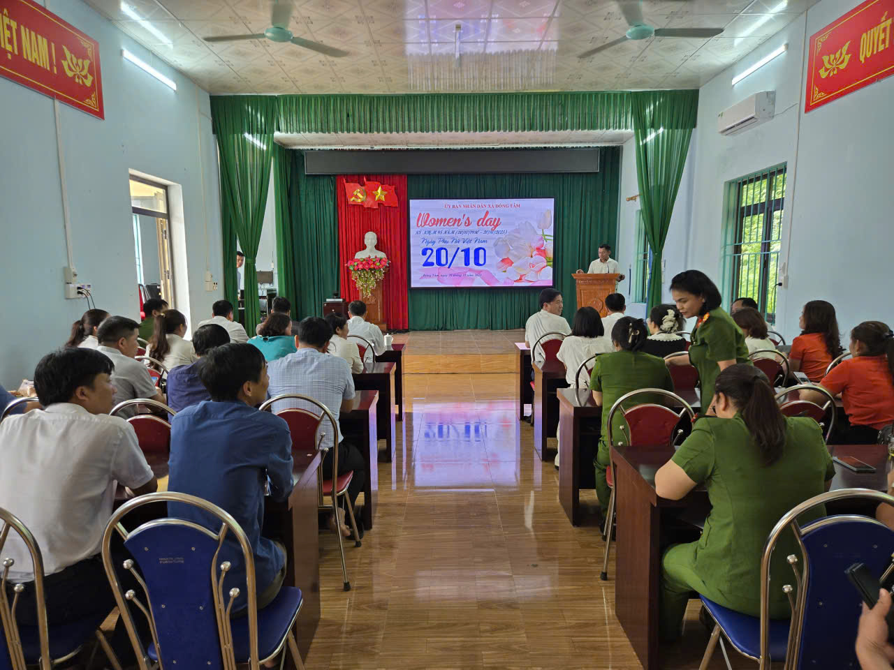 Sáng ngày 20/10/2025, UBND xã Đồng Tâm, tỉnh Tuyên Quang tổ chức buổi gặp mặt chúc mừng Ngày Phụ nữ Việt Nam 20/10 đối với nữ cán bộ, chiến sỹ, công chức, viên chức và người lao động làm việc tại các phòng, trung tâm, đơn vị sự nghiệp công lập trực thuộc, đơn vị lực lượng vũ trang xã.