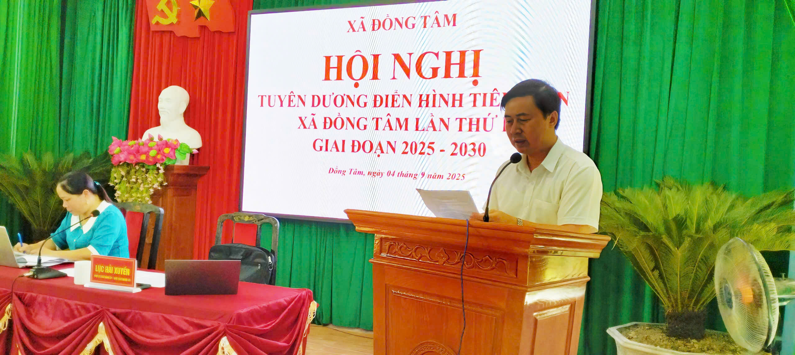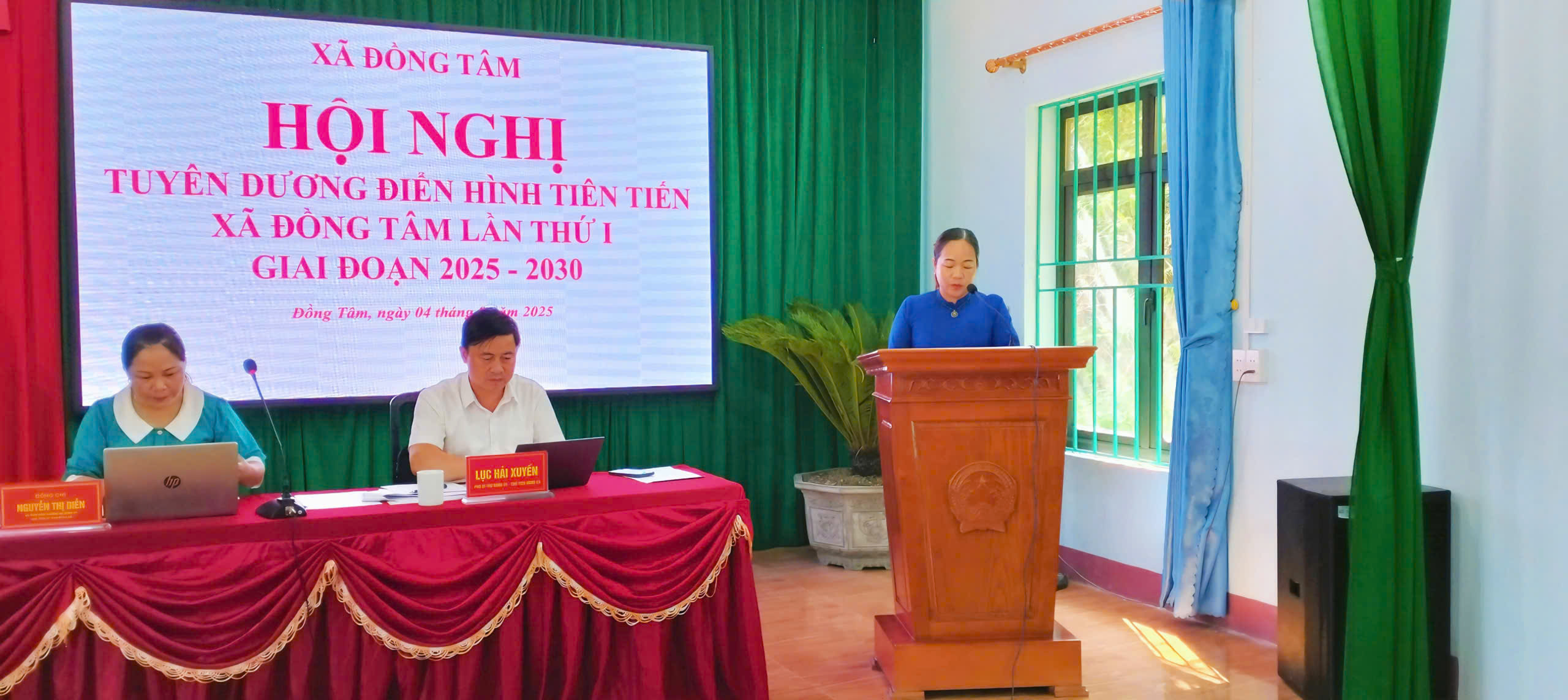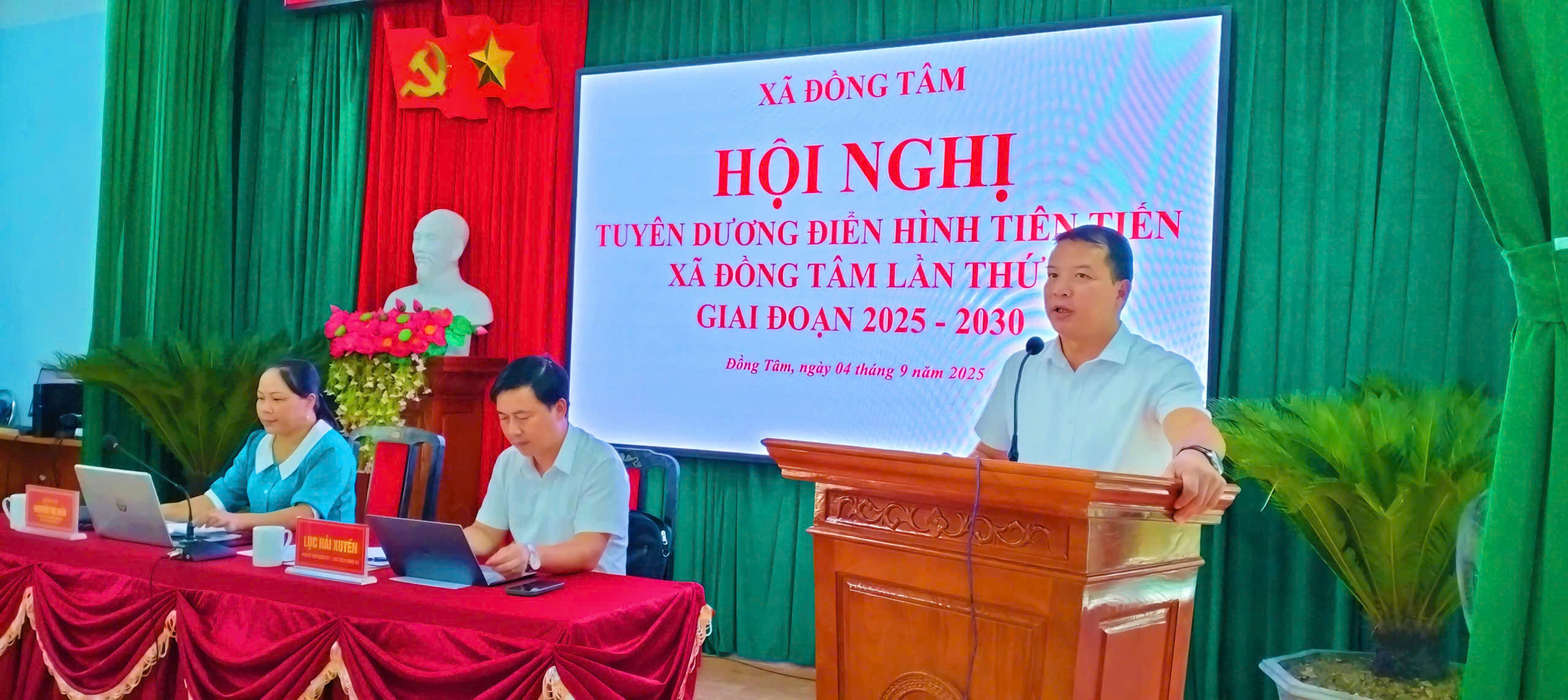 Ngày 04/9/2025 xã Đồng Tâm, tỉnh Tuyên Quang tổ chức Hội nghị tuyên dương điển hình tiên tiến lần thứ nhất, giai đoạn 2025-2030. Hội nghị diễn ra trong ½ ngày với sự góp mặt tham dự của 130 đại biểu, trong đó có đại diện 44 tập thể, cá nhân điển hình tiên tiến được khen thưởng. Hội nghị đã đánh giá lại các mặt hoạt động của phong trào thi đua yêu nước như: Kết quả thực hiện các phong trào thi đua do Thủ tướng Chính phủ, các bộ, ngành, địa phương phát động trên các lĩnh vực. Đây là hội nghị mang ý nghĩa rất quan trọng nhằm biểu dương thành tích và tôn vinh các tập thể, cá nhân điển hình tiên tiến, tiêu biểu trên các lĩnh vực, các thành phần kinh tế và Nhân dân các dân tộc trên địa bàn xã, qua đó khơi dậy, cổ vũ sức mạnh khối đại đoàn kết toàn dân tộc, phát huy nội lực, tạo động lực thi đua lập thành tích chào mừng Đại hội Đảng bộ các cấp, tiến tới Đại hội đại biểu toàn quốc lần thứ XIV của Đảng; Đại hội Thi đua yêu nước tỉnh Tuyên Quang lần thứ I, giai đoạn 2025-2030 và Đại hội Thi đua yêu nước toàn quốc lần thứ XI năm 2025.